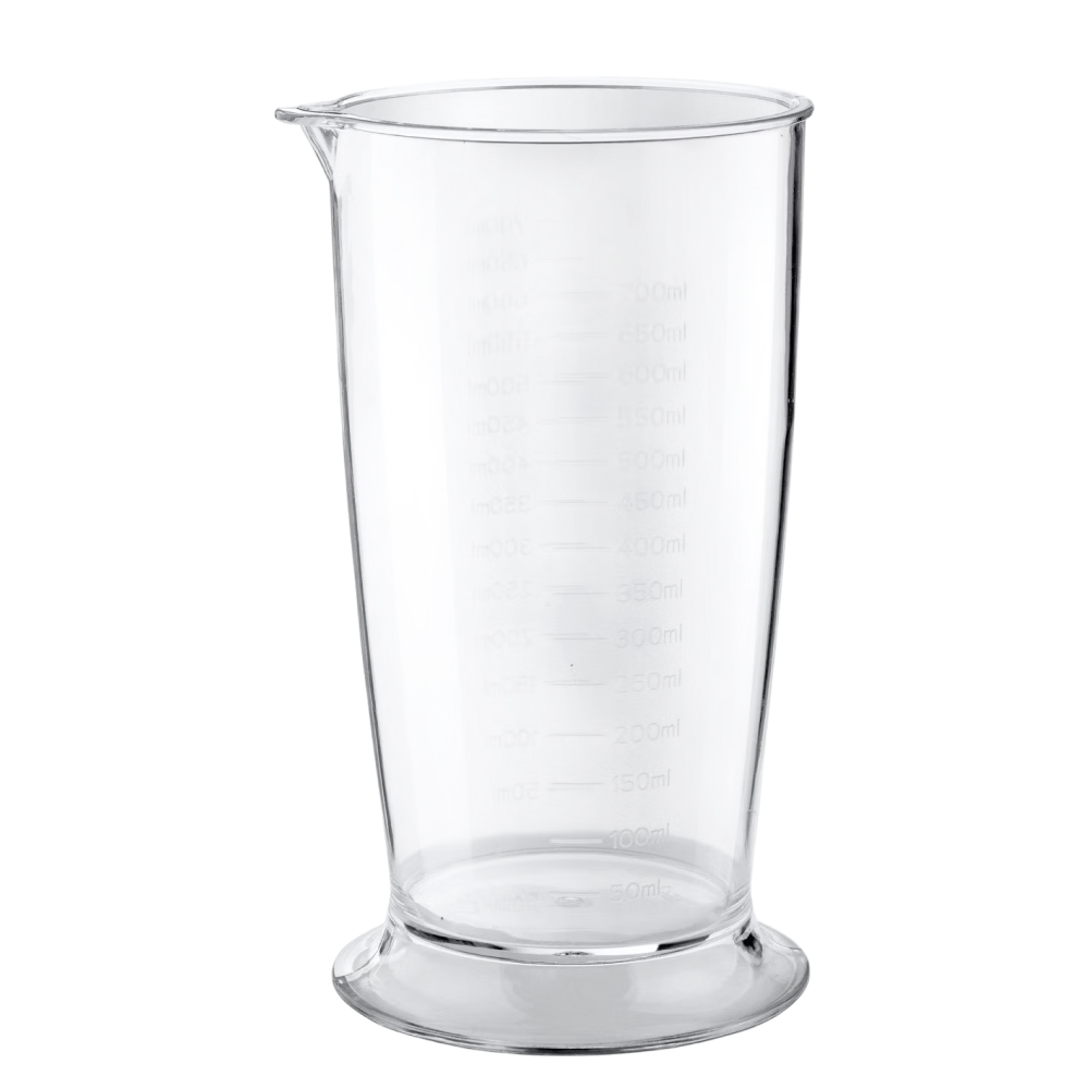Мерный пластиковый стакан предназначен для удобного смешивания и измерения жидких и сыпучих ингредиентов с использованием погружного блендера. Оснащен мерной шкалой с делениями от 50 до 700 мл, что позволяет точно отмерять необходимый объем компонентов.