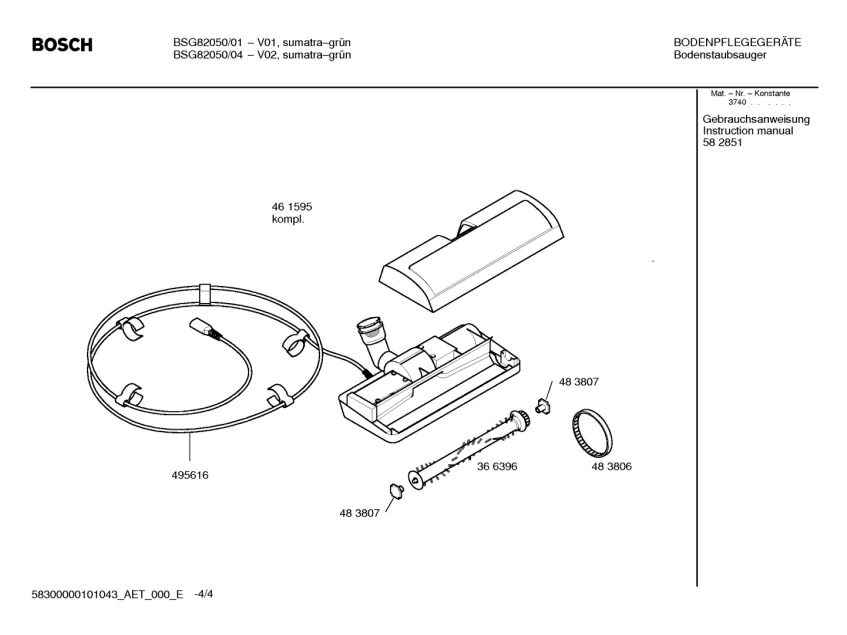 Запчасти для Bosch BSG82050/04 (58300000101043_aet_000_e_04)