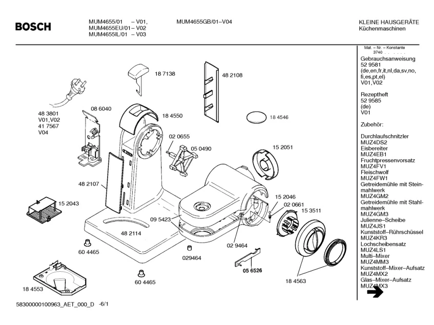 Запчасти для Bosch MUM4655EU/01 (58300000100963_aet_000_d_01)