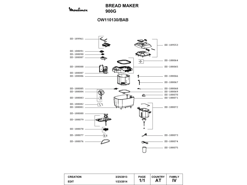 Запчасти для хлебопечки Moulinex OW110130/BAB (OW110130-BAB-1)