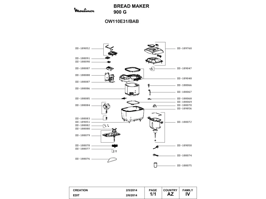 Запчасти для хлебопечки Moulinex OW110E31/BAB (OW110E31-BAB-1)