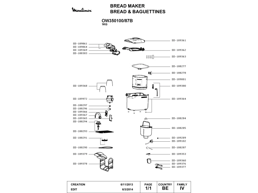Запчасти для хлебопечки Moulinex OW350131/87B (OW350100-87B-1)