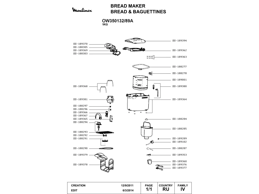 Запчасти для хлебопечки Moulinex OW350132/89A (OW350132-89A-1)