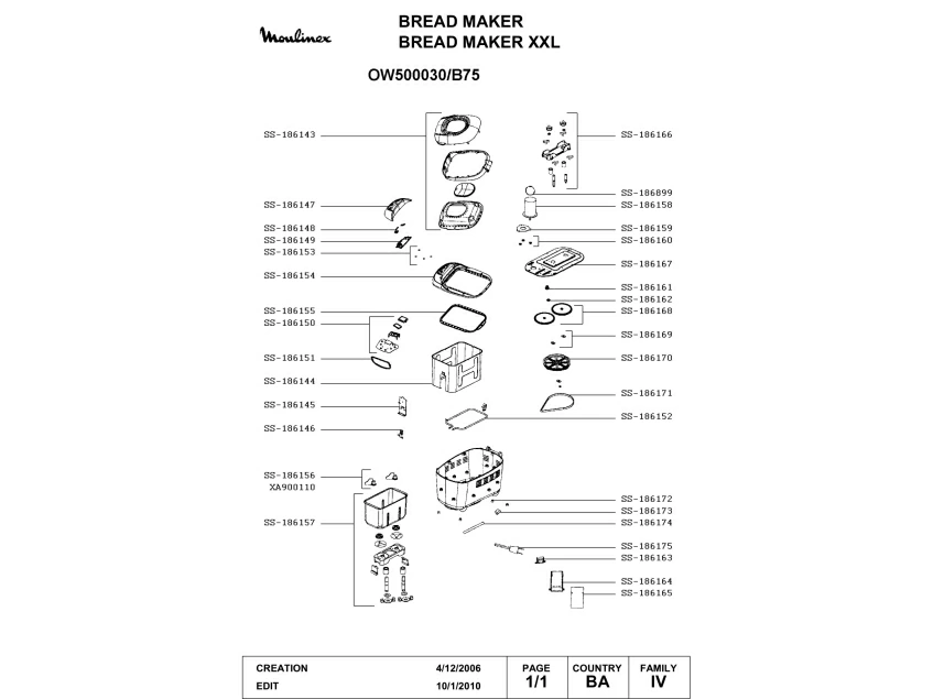 Запчасти для хлебопечки Moulinex OW500030/B75 (OW500030-B75-1)