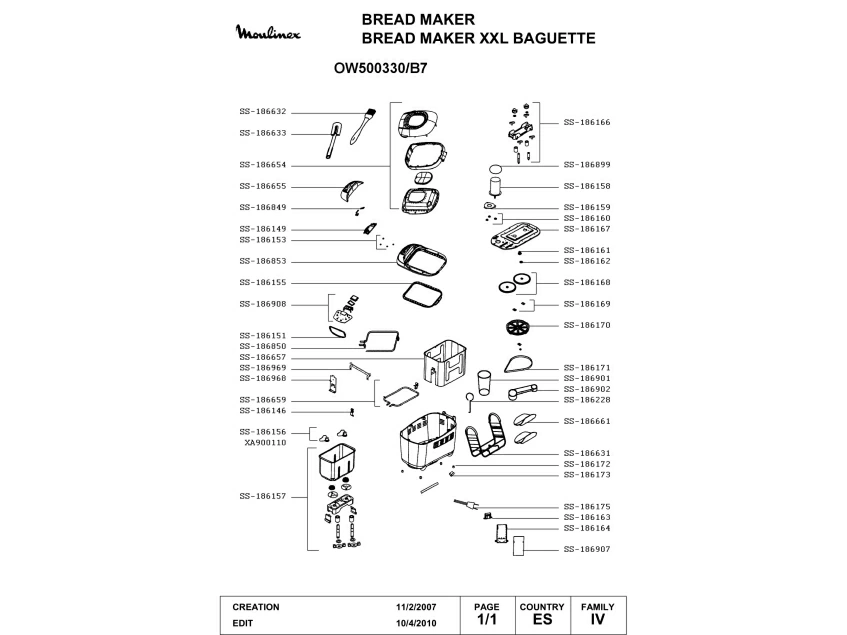 Запчасти для хлебопечки Moulinex OW500330/B7 (OW500330-B7-1)