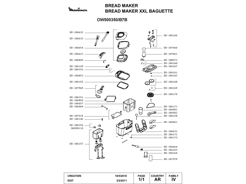 Запчасти для хлебопечки Moulinex OW500350/B7B (OW500350-B7B-1)