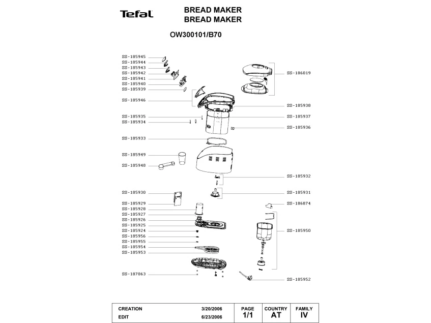 Запчасти для хлебопечки Tefal OW300101/B70 (OW300101-B70)