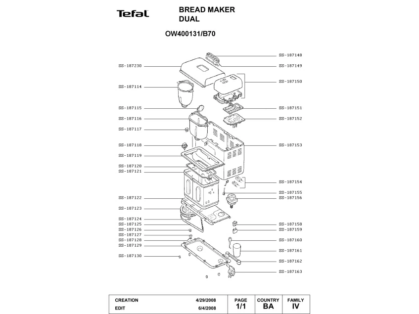 Запчасти для хлебопечки Tefal OW400131/B70 (OW400131-B70)