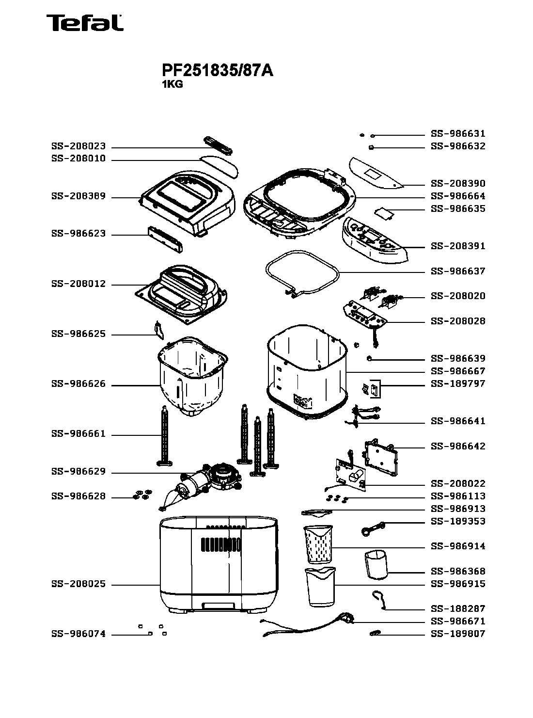 Запчасти для хлебопечки Tefal PF251835/87A