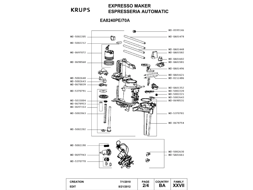 Запчасти для кофемашины Krups EA8240PE/70A (EA8240PE-70A-4)