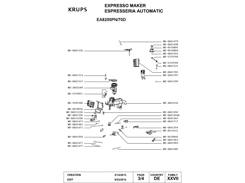 Запчасти для кофемашины Krups EA8255PN/70D (EA8255PN-70D-2)