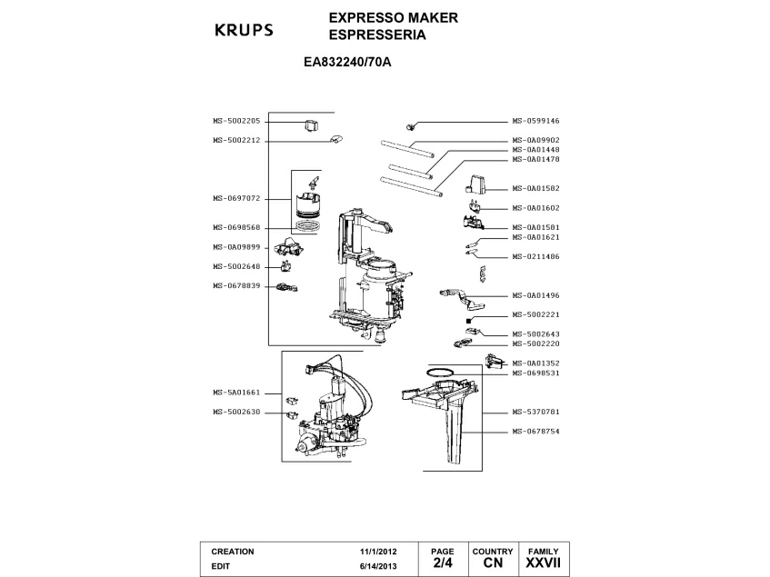 Запчасти для кофемашины Krups EA832240/70A (EA832240-70A-1)