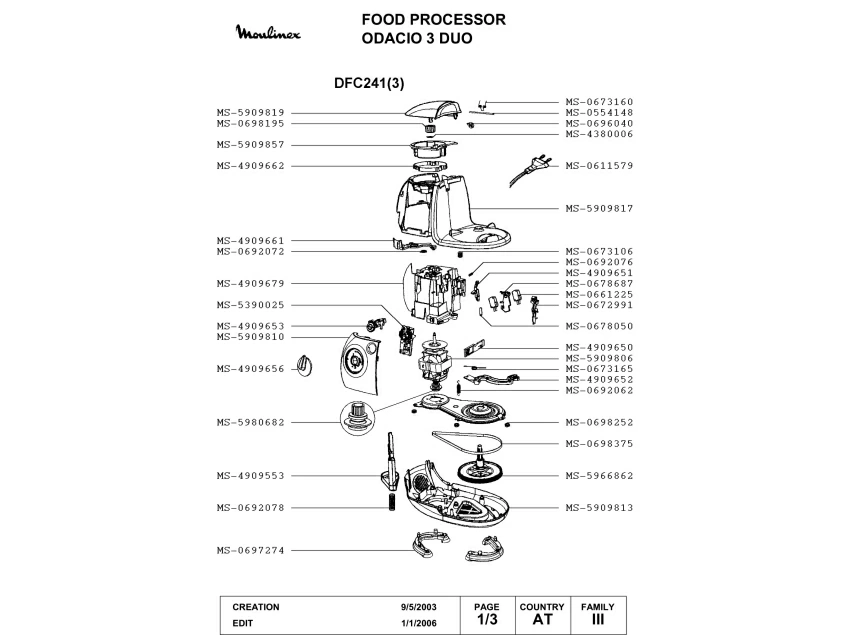 Запчасти для кухонного комбайна Moulinex DFC241(3) (DFC241(3)-1)