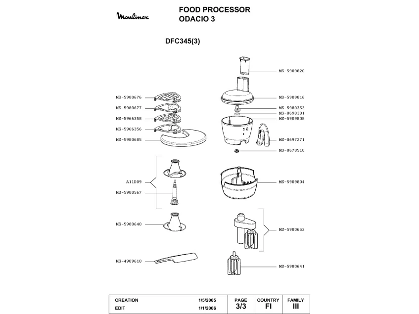 Запчасти для кухонного комбайна Moulinex DFC345(3) (DFC345(3)-3)
