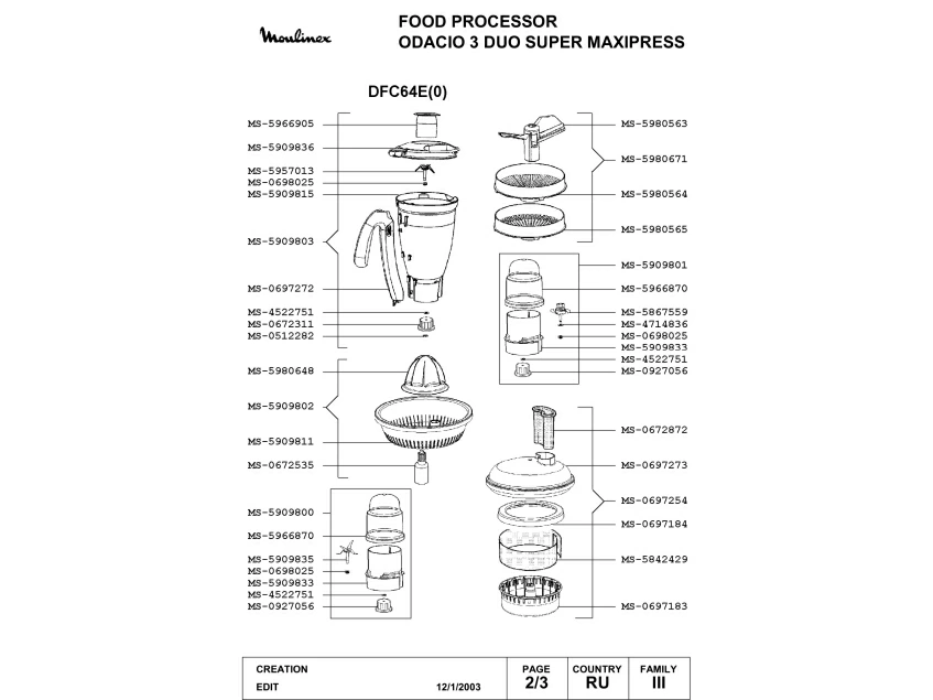 Запчасти для кухонного комбайна Moulinex DFC64E(0) (DFC64E(0)-2)