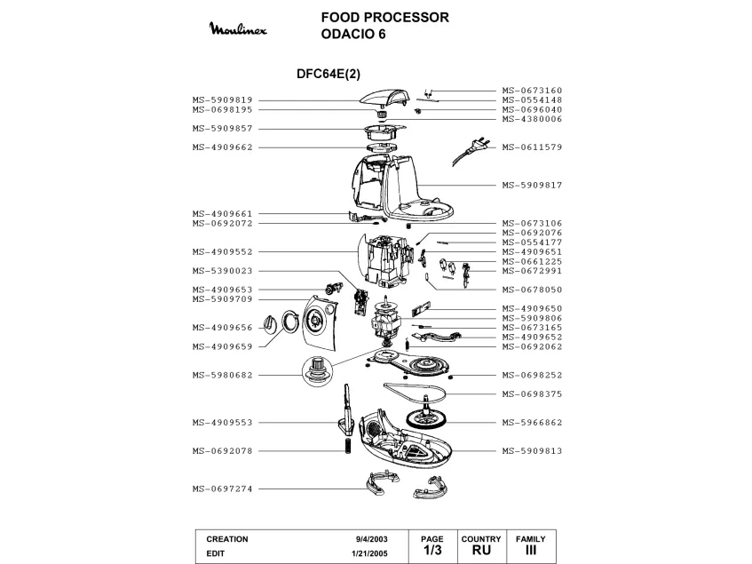 Запчасти для кухонного комбайна Moulinex DFC64E(2) (DFC64E(2)-1)