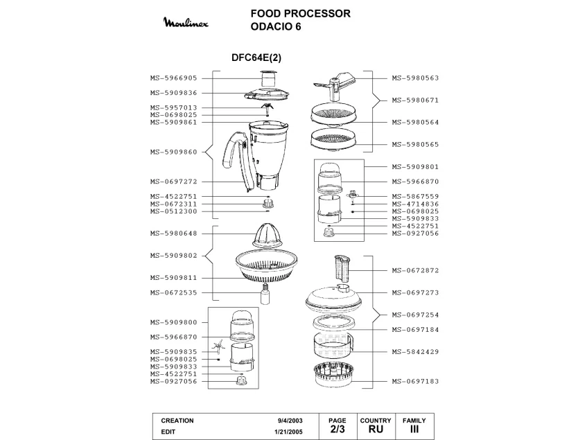 Запчасти для кухонного комбайна Moulinex DFC64E(2) (DFC64E(2)-2)