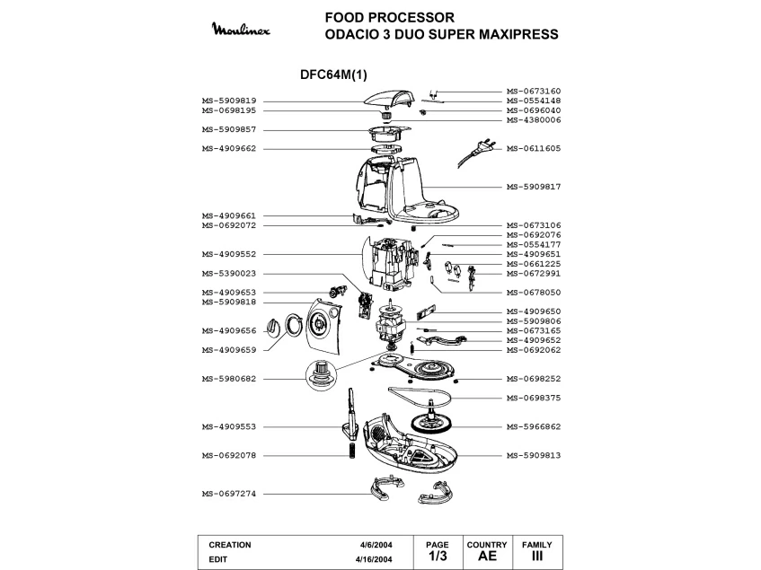 Запчасти для кухонного комбайна Moulinex DFC64M(1) (DFC64M(1)-1)