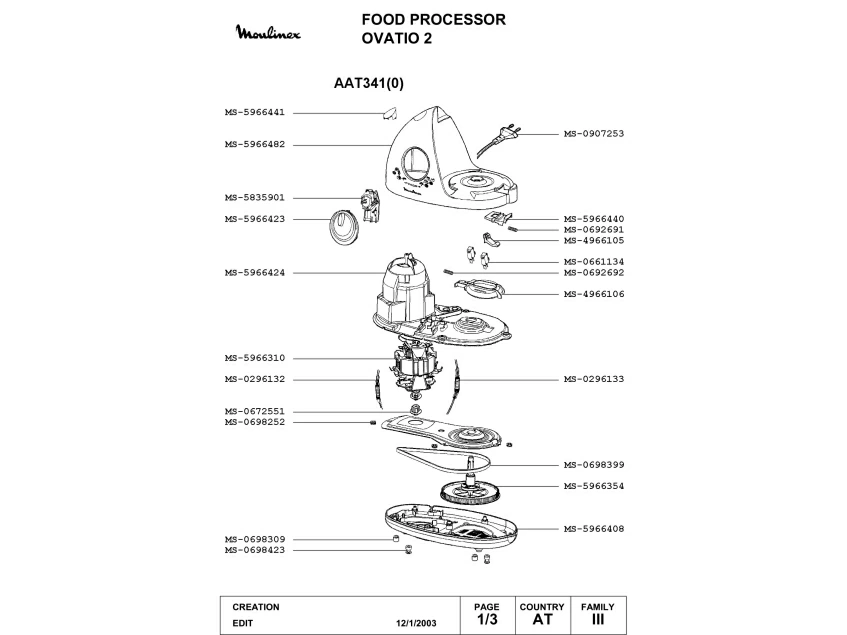Запчасти для кухонного комбайна Moulinex AAT341(0) (AAT341(0)_1-1)