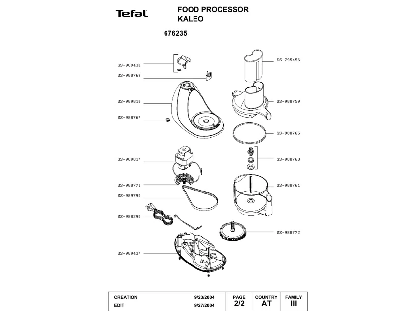 Запчасти для кухонного комбайна Tefal 676235 (676235-2)