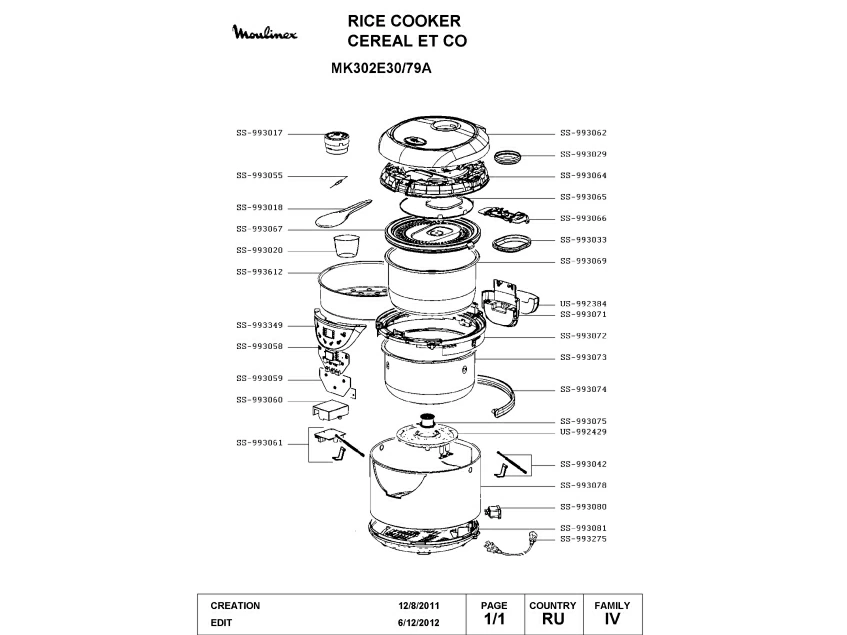 Запчасти для мультиварки Moulinex MK302E30/79A (MK302E30-79A)