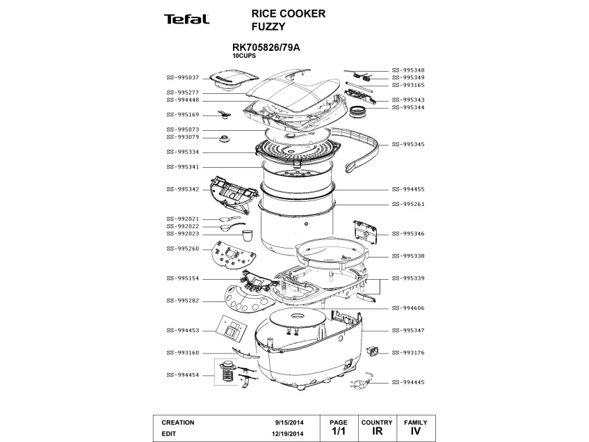 Запчасти для мультиварки Tefal RK705826/79A (RK705826-79A)
