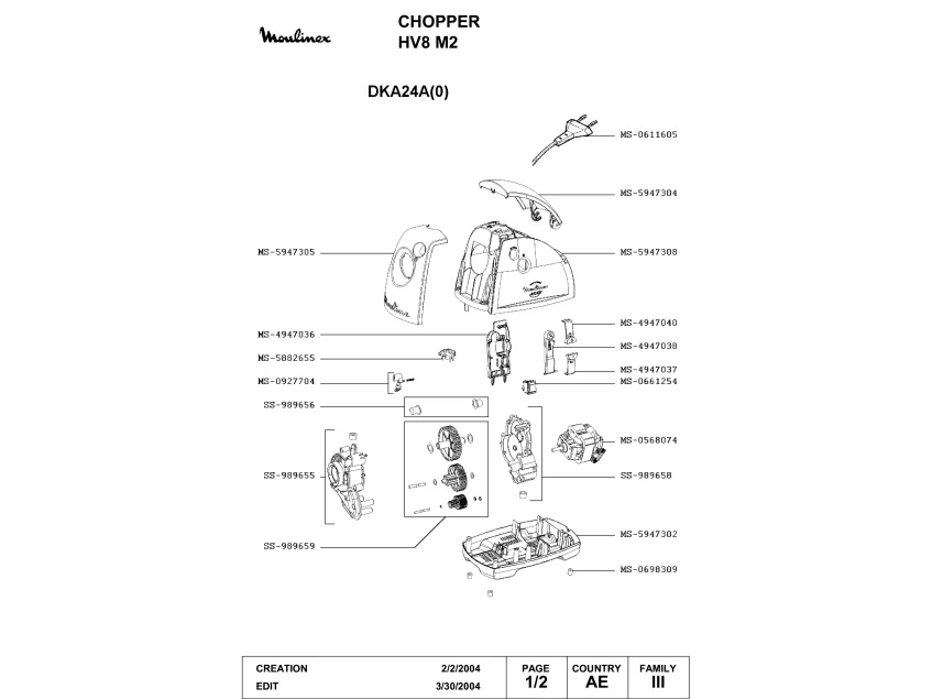 Запчасти для мясорубки Moulinex DKA24A(0) (DKA24A(0)_1)
