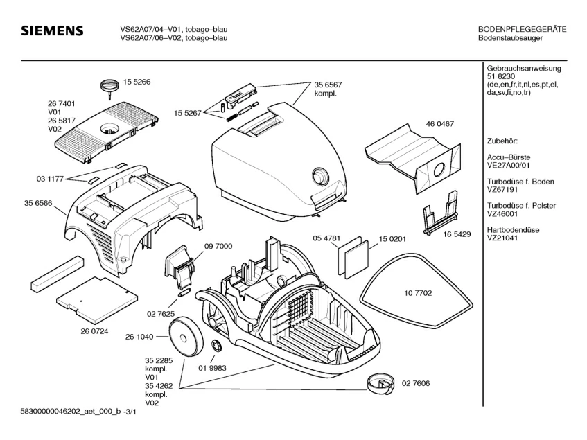 Запчасти для пылесоса Siemens VS62A07/04 (58300000046202_aet_000_b_01)