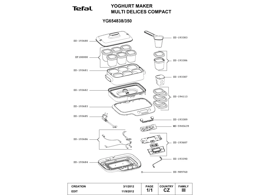 Запчасти для йогуртницы Tefal YG654838/350 (YG654838-35A)