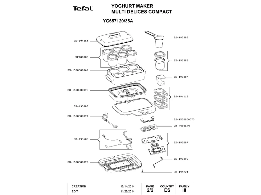 Запчасти для йогуртницы Tefal YG657120/35A (YG657120-35A-2)